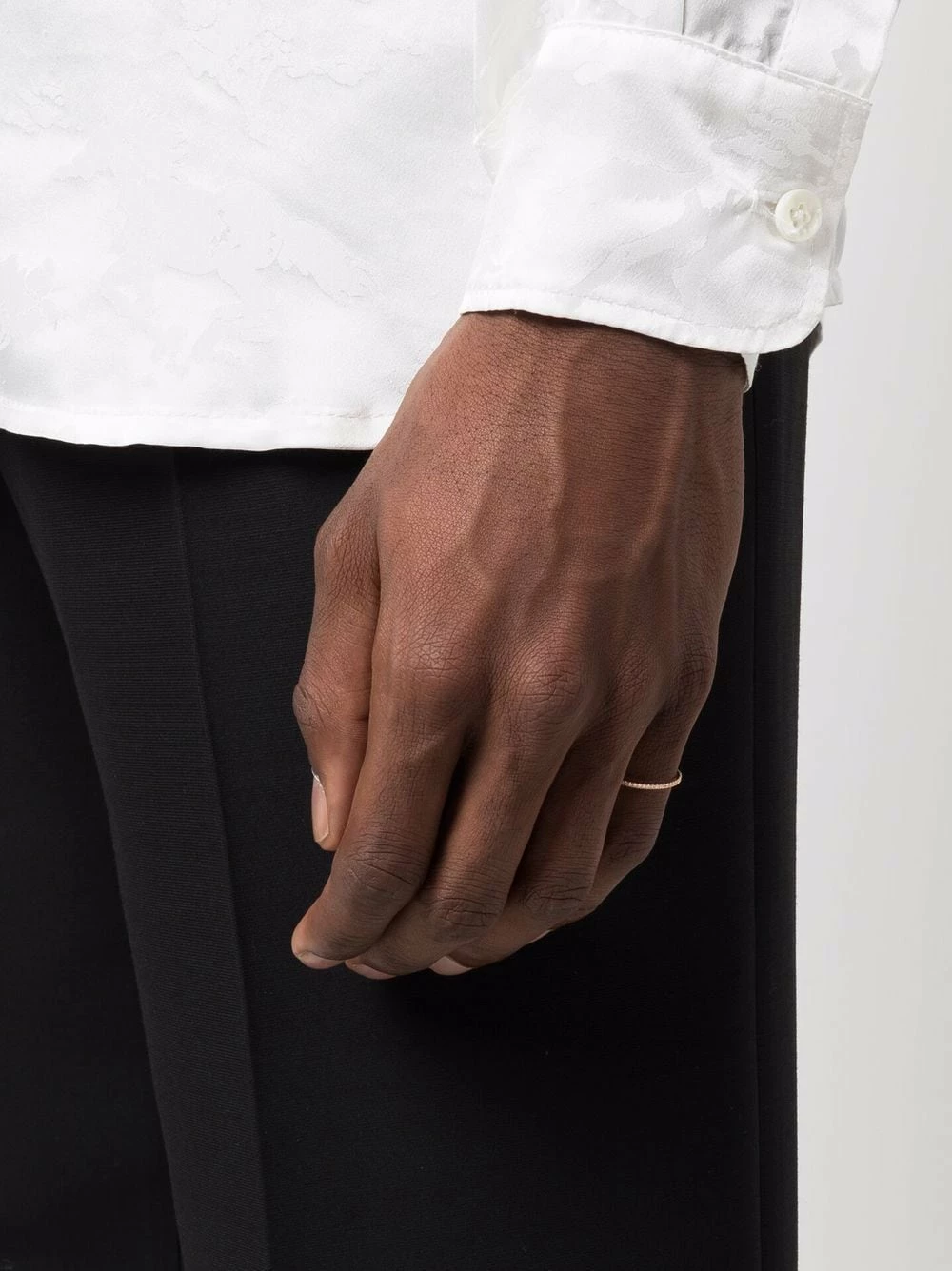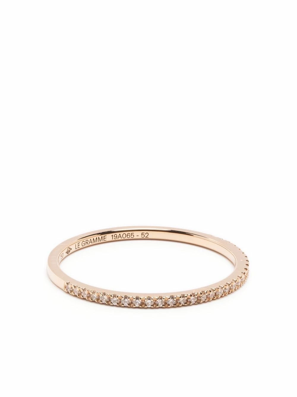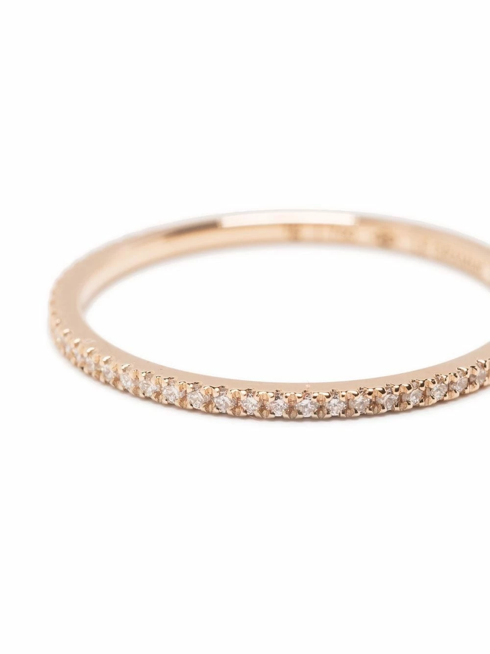 Bague fine, logo gravé, design partiellement pavé de diamants.