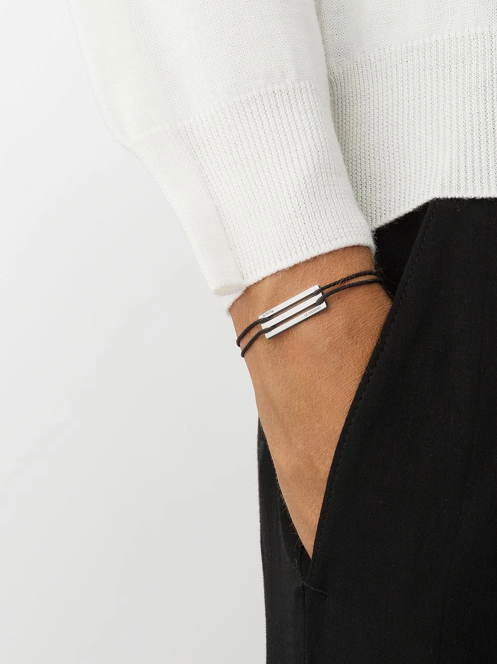 Bracelet 25/10g en argent véritable Le Gramme avec taille ajustable. Couleur : noir. Cet article est unisexe et est vendu en taille homme.