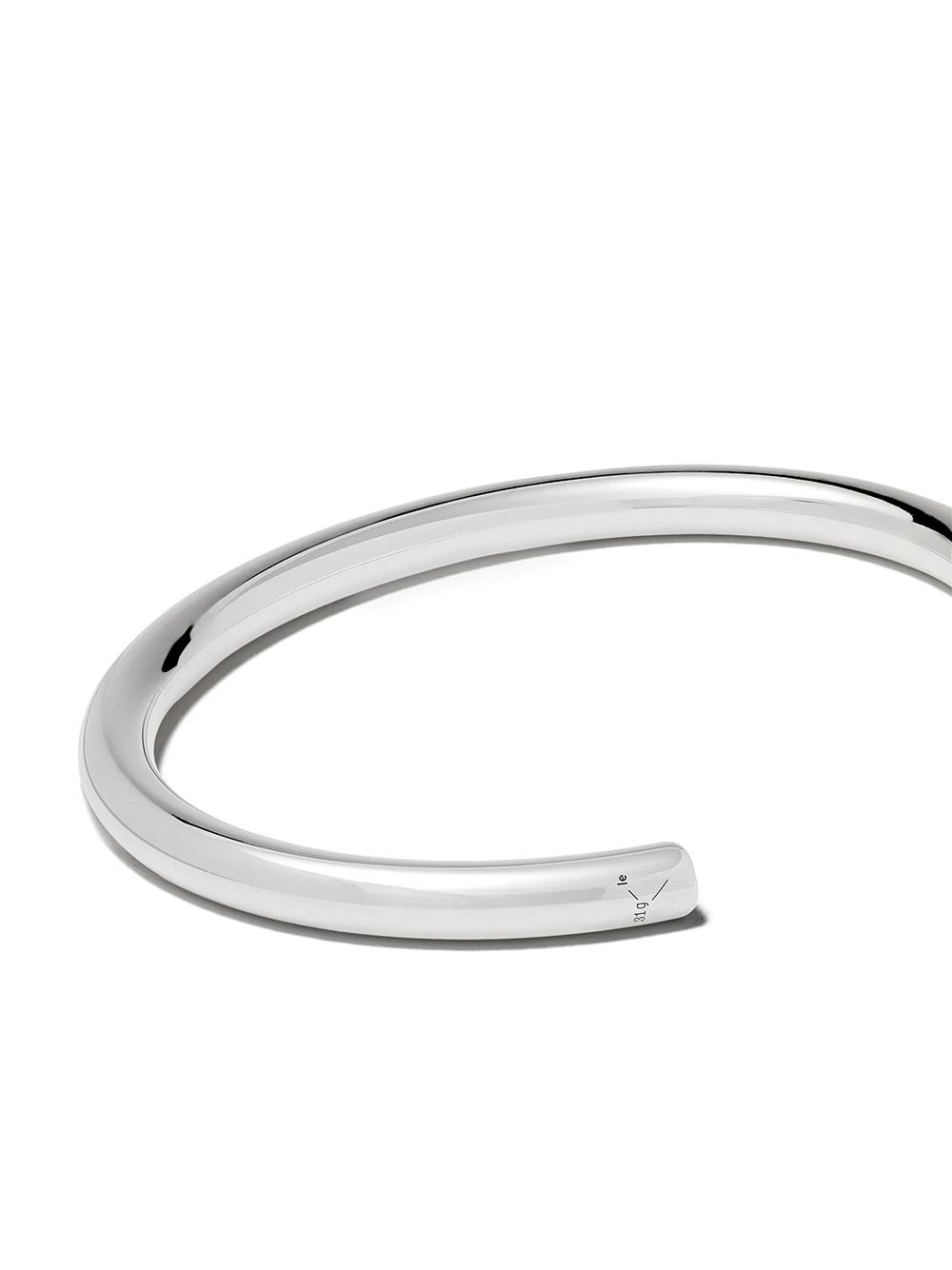 Le 31 bangle bracelet en argent sterling Le Gramme avec un logo gravé et design à enfiler. Cet article est unisexe et est vendu en taille homme.