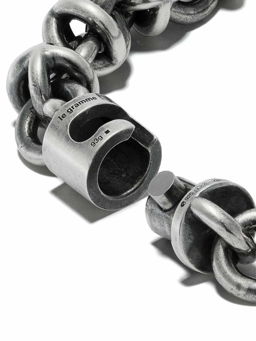 Fermeture à loquet, détails de chaînes. Matière : argent sterling.