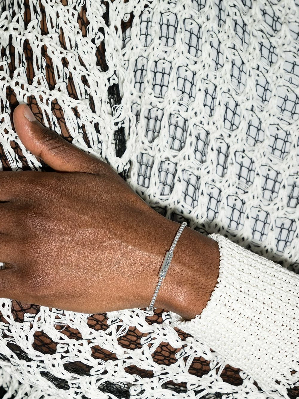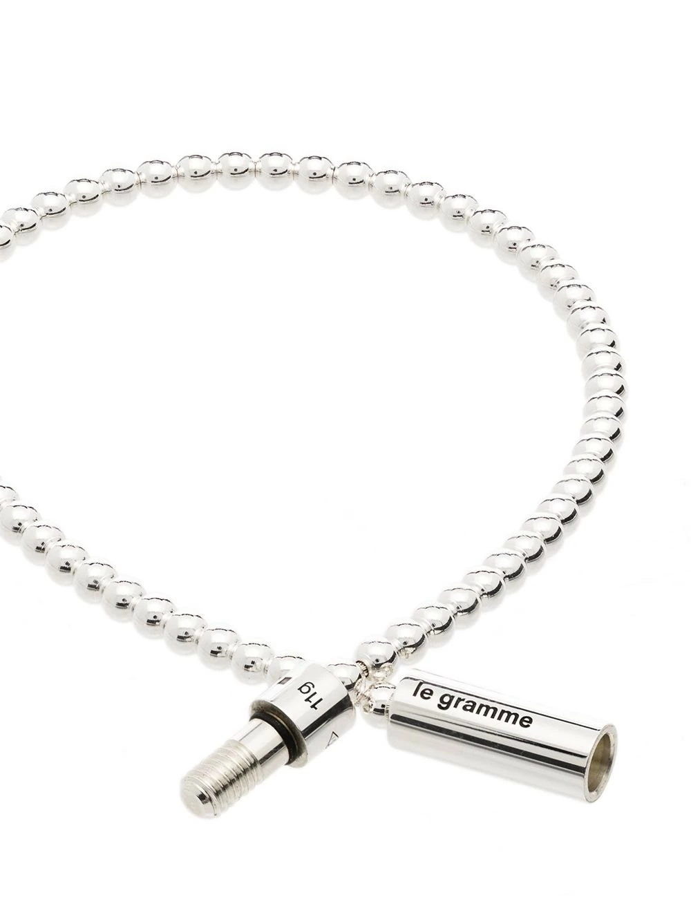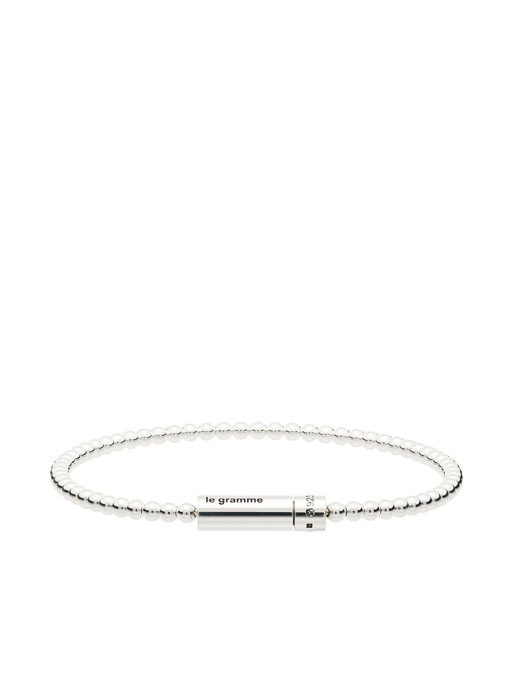 Fini poli, logo gravé, maille boule, fermoir pivotant. Matière : argent sterling.