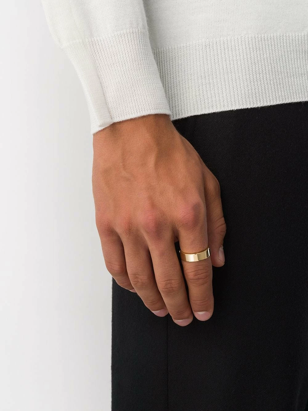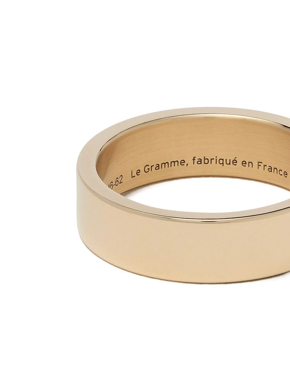 Bague Ribbon Le Gramme avec an engraved logo. Cet article est unisexe et est vendu en taille homme.
