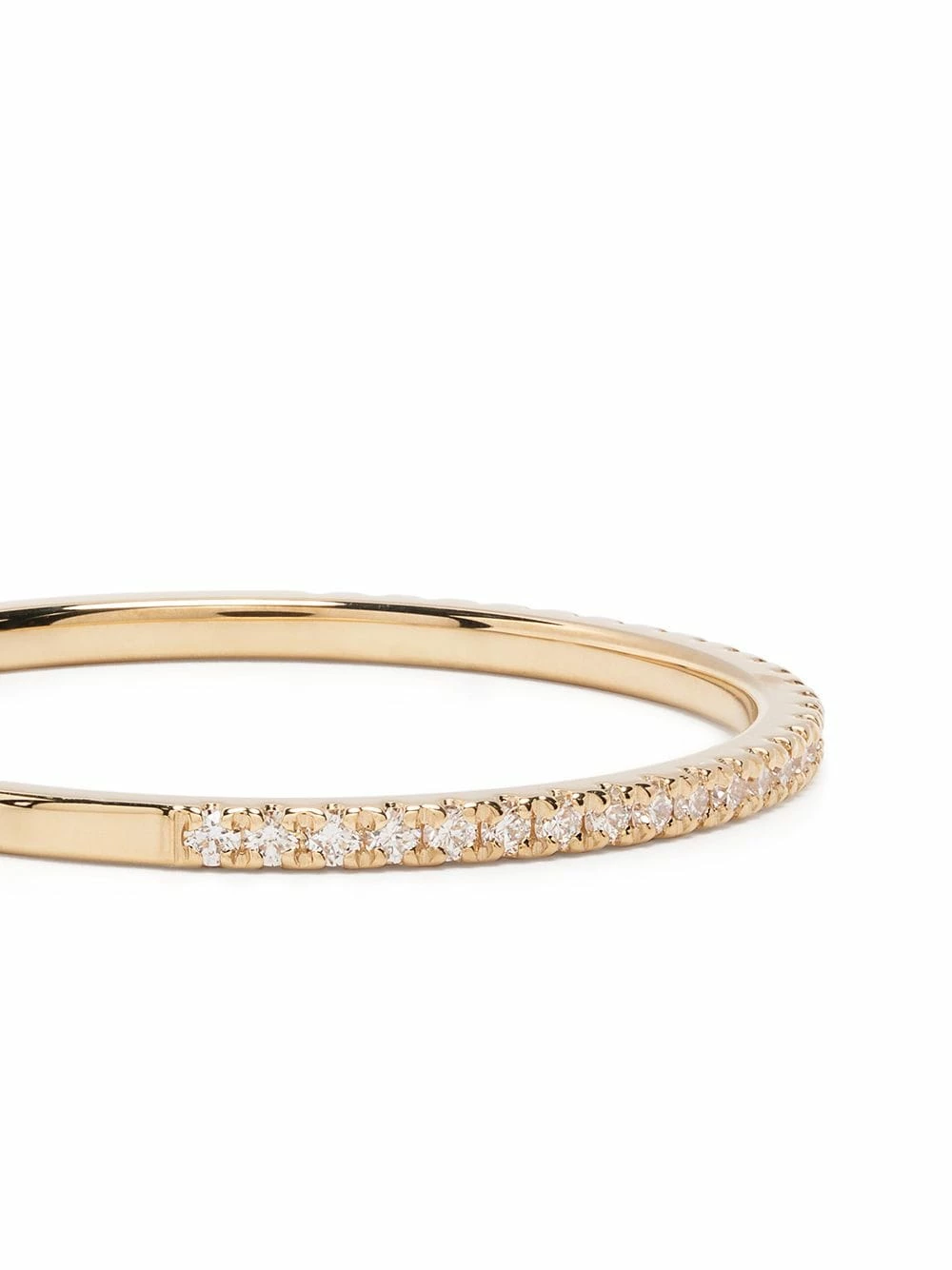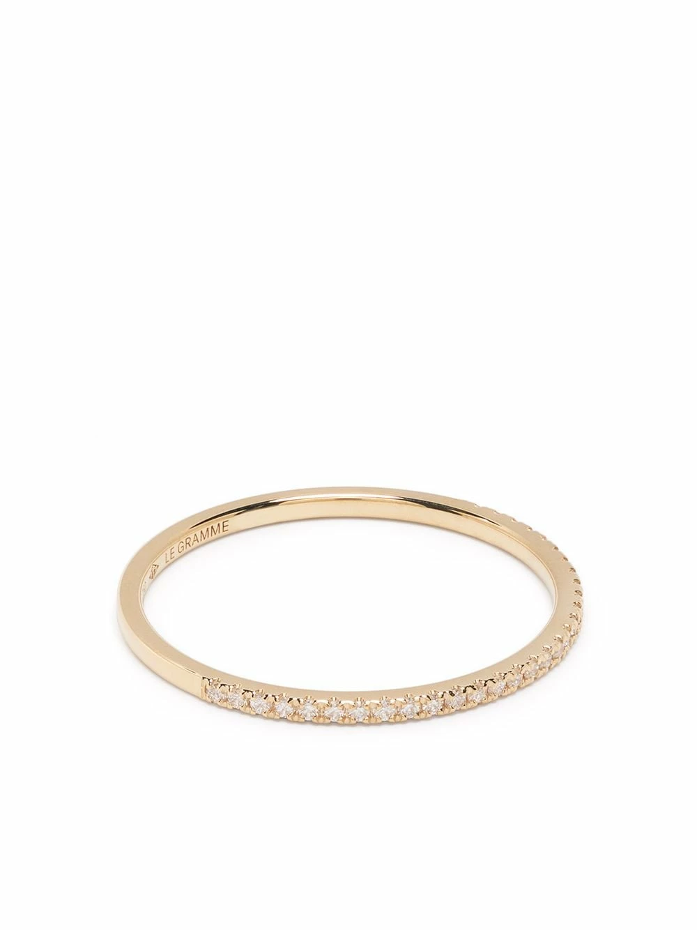 Bague fine, logo gravé, design partiellement pavé de diamants.