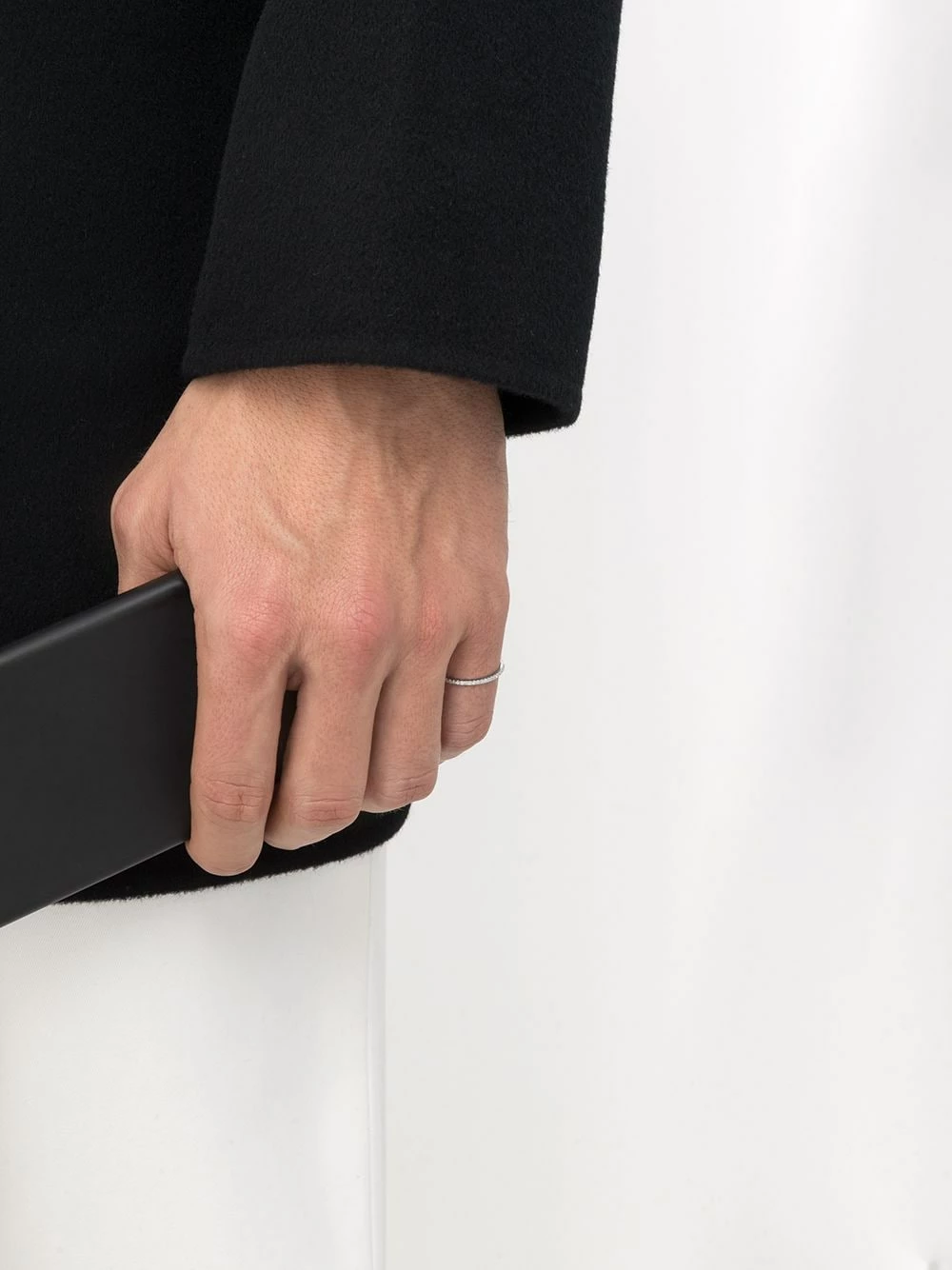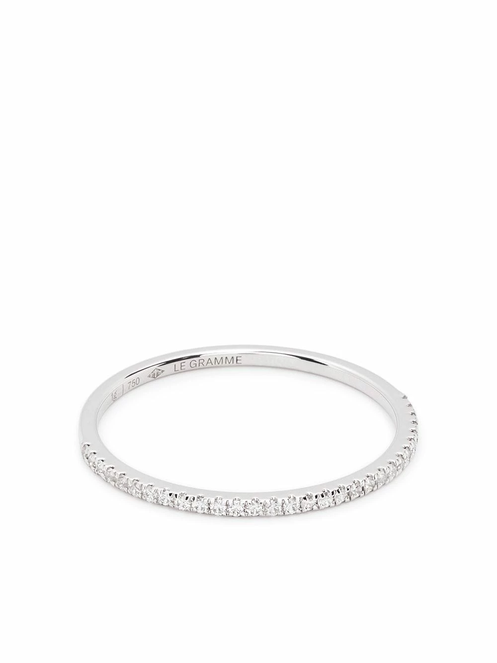 Bague fine, design partiellement pavé de diamants, logo gravé.