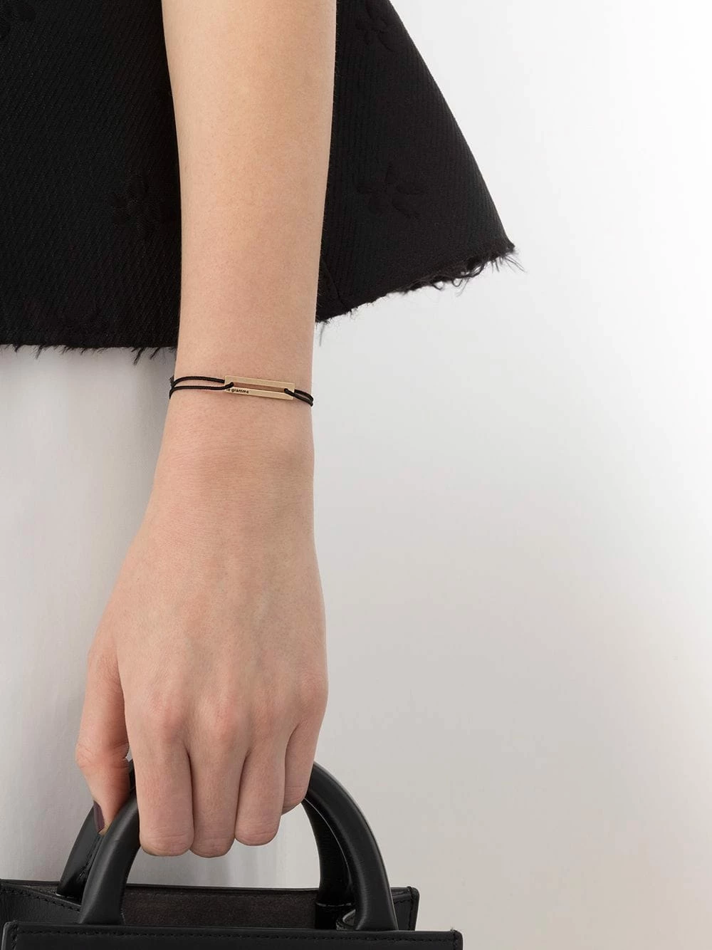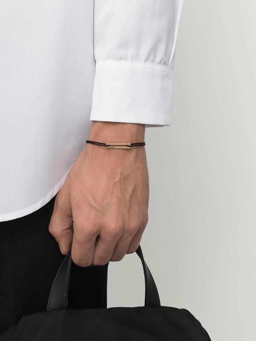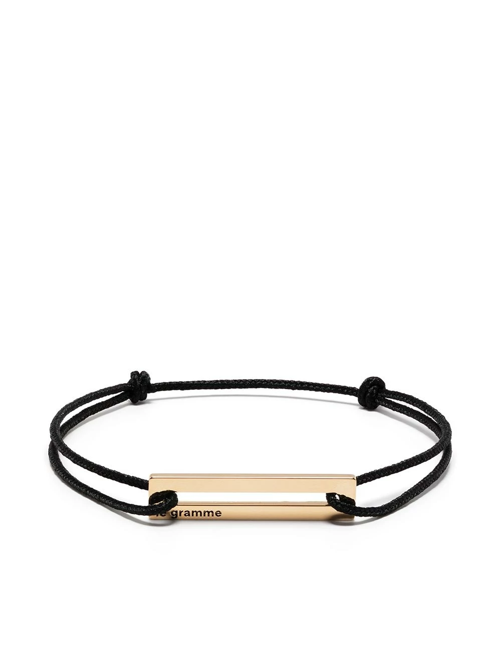 Logo gravé, fermeture coulissante ajustable, détail de nœud.