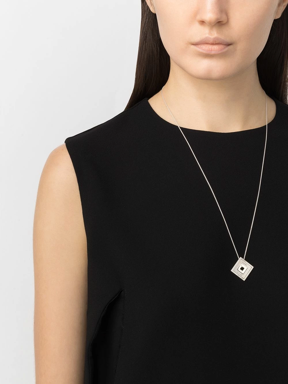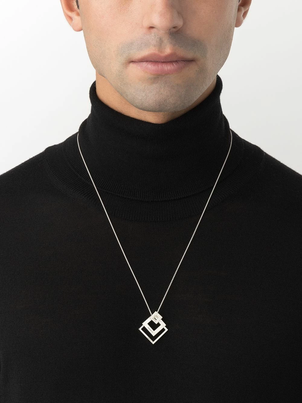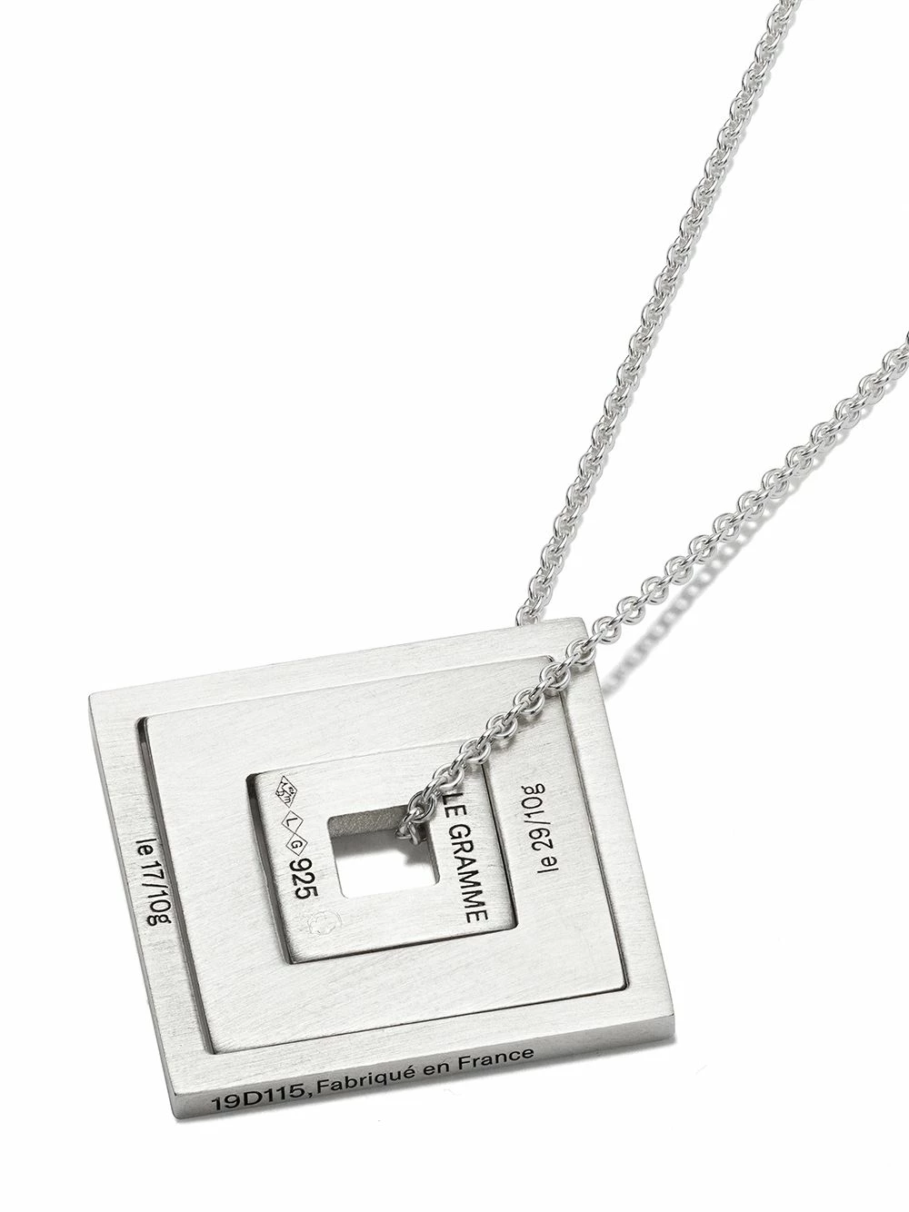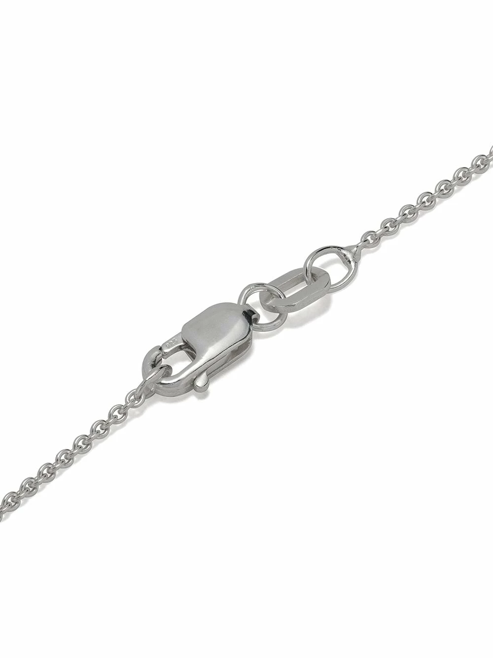 Fermoir mousqueton, chaîne fine, logo gravé, fini brossé. Matière : argent sterling.