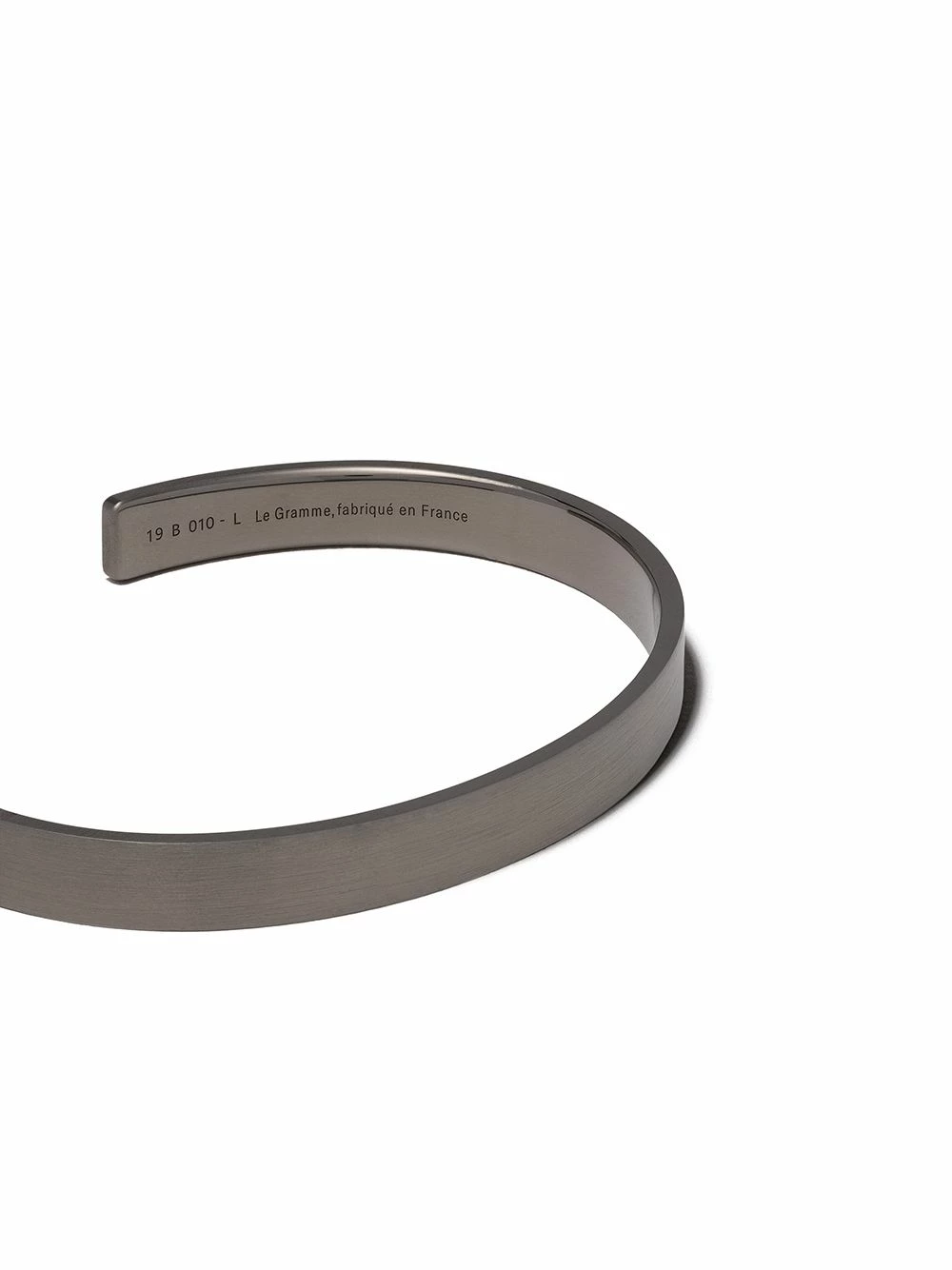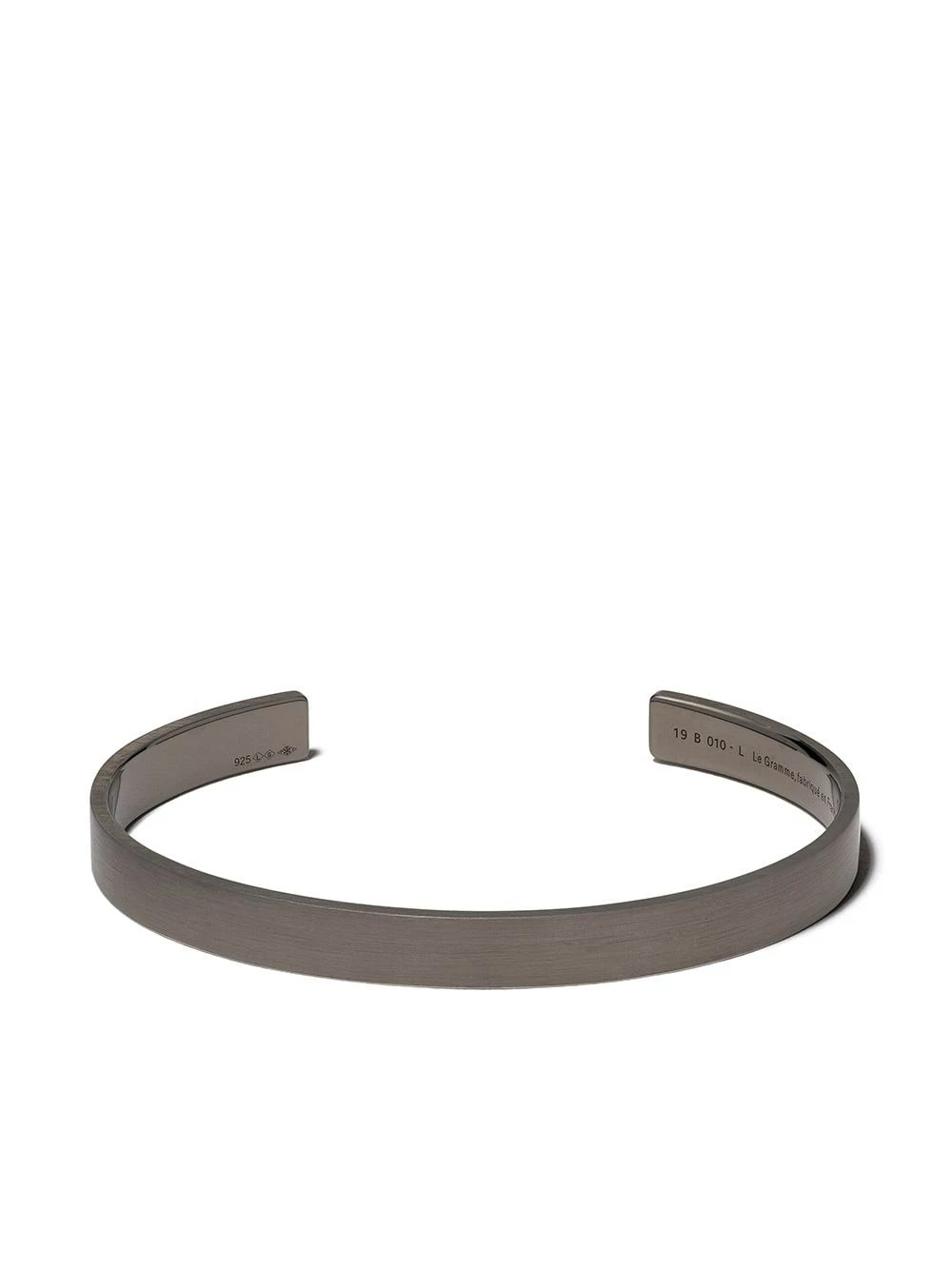 Ribbon bracelet en argent sterling Le Gramme avec un logo gravé et design à enfiler. Cet article est unisexe et est vendu en taille homme.