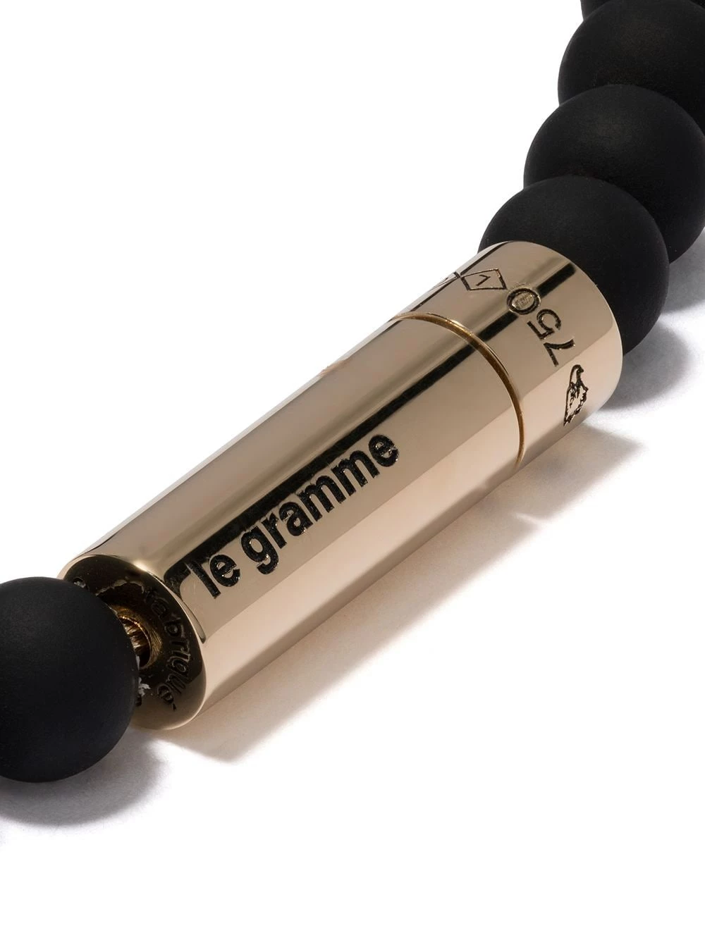 Maille boule, finitions argentées et breloque géométrique. Couleur: noir. Matière: or jaune 18ct et laque.