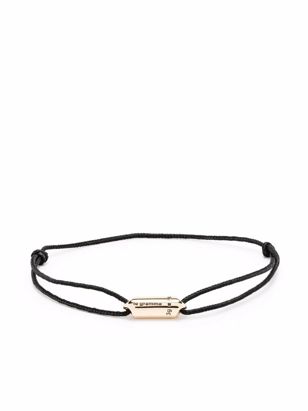 Taille ajustable, cordon, logo gravé, fini poli, détail de breloque.